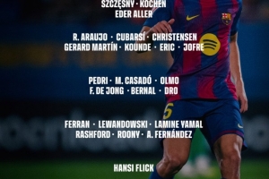 前锋:费兰-托雷斯、莱万、亚马尔、拉什福德、巴德吉、托尼-费尔南德斯