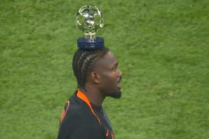 体育资讯10月01日讯 欧冠联赛阶段第2轮,国际米兰主场3-0战胜布拉格斯拉维亚,赛后图拉姆当选全场最佳,他还将全场最佳的奖杯顶在头顶。